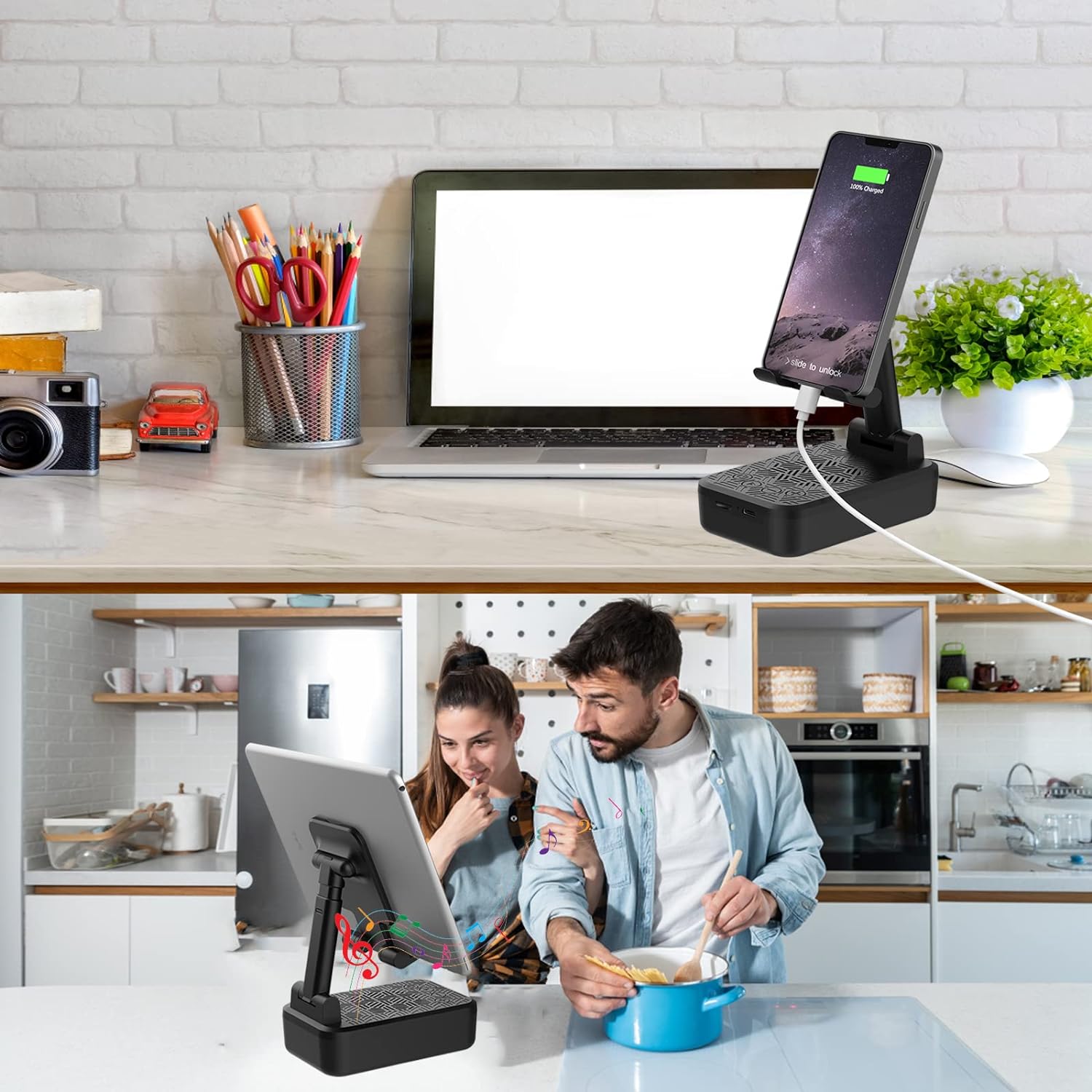 Compatible with all mobile phones and tablets, this versatile device is the perfect gift for both men and women who appreciate convenience and quality sound. Whether you’re cooking in the kitchen, relaxing in the backyard, or working from home, the Cell Phone Stand with Wireless Bluetooth Speaker is a must-have accessory for all your audio needs.