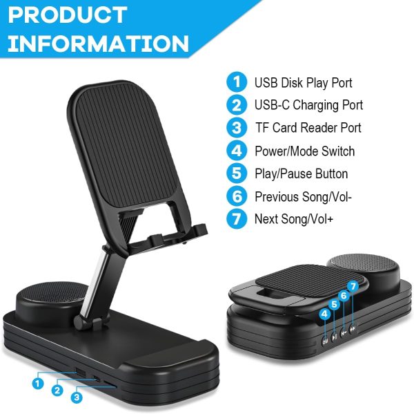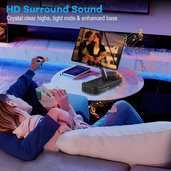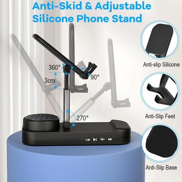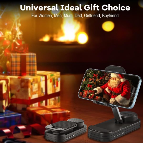 Tech Gift for Men, Cell Phone Stand with Bluetooth Speaker for Him Dad Women Who Want Nothing, Adjustable Tablet Holder with Wireless Speaker Desktop Tech Gadgets Unique Ideal Gift (Black)