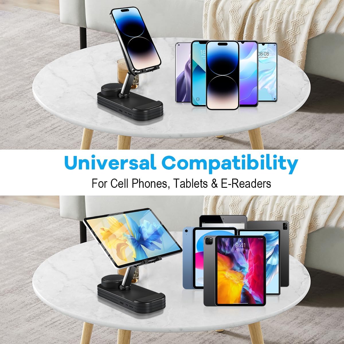 Introducing the perfect tech gift for the special man or dad in your life who already has everything – the Cell Phone Stand with Bluetooth Speaker! This innovative gadget not only holds your phone or tablet securely in place with its adjustable holder, but also features a built-in wireless speaker for a complete hands-free experience.
