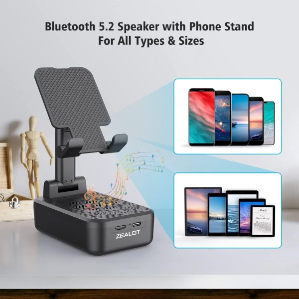 The ZEALOT Bluetooth speaker with Phone Stand is a versatile and convenient gadget that is perfect for both women and men. This multi-functional device not only delivers high-quality sound with its built-in speaker, but also doubles as a phone holder, iPad stand, and cell phone stand.